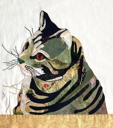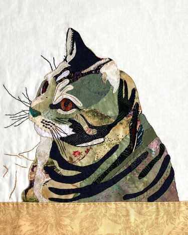 Provide me with a picture of your furry friend and I will reimagine them in fabric form. Portrait commission pricing begins at $200 and are entirely hand stitched. Current wait time is 6 weeks.