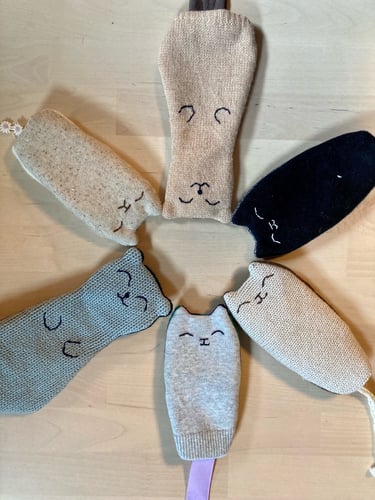 Want your very own furry friend portrait? An order of recycled sweater toys for all the crazy cat ladies in your life? Just ask.