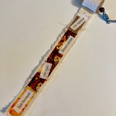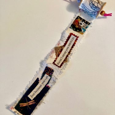 Artist inspiration: Jette Clover, I love the rugged piecing this artist uses. I actually discovered it after I made these scrolls and gives similar vibes. They use similar printed strips and simple stitching in their collages series and use color and form really effectively.